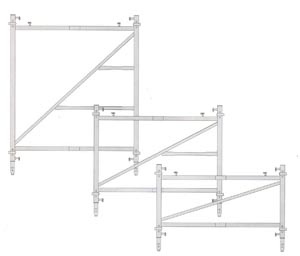 Основные элементы рамной опалубки – это рамы и диагональные связки. Вспомогательными элементами конструкции являются винтовые опоры, а также винтовые головки, на которые опирается балка. Рамную опалубку можно снабдить лестницей для рабочих и тем самым сократить необходимость в аренде вышек тур или других лесов.