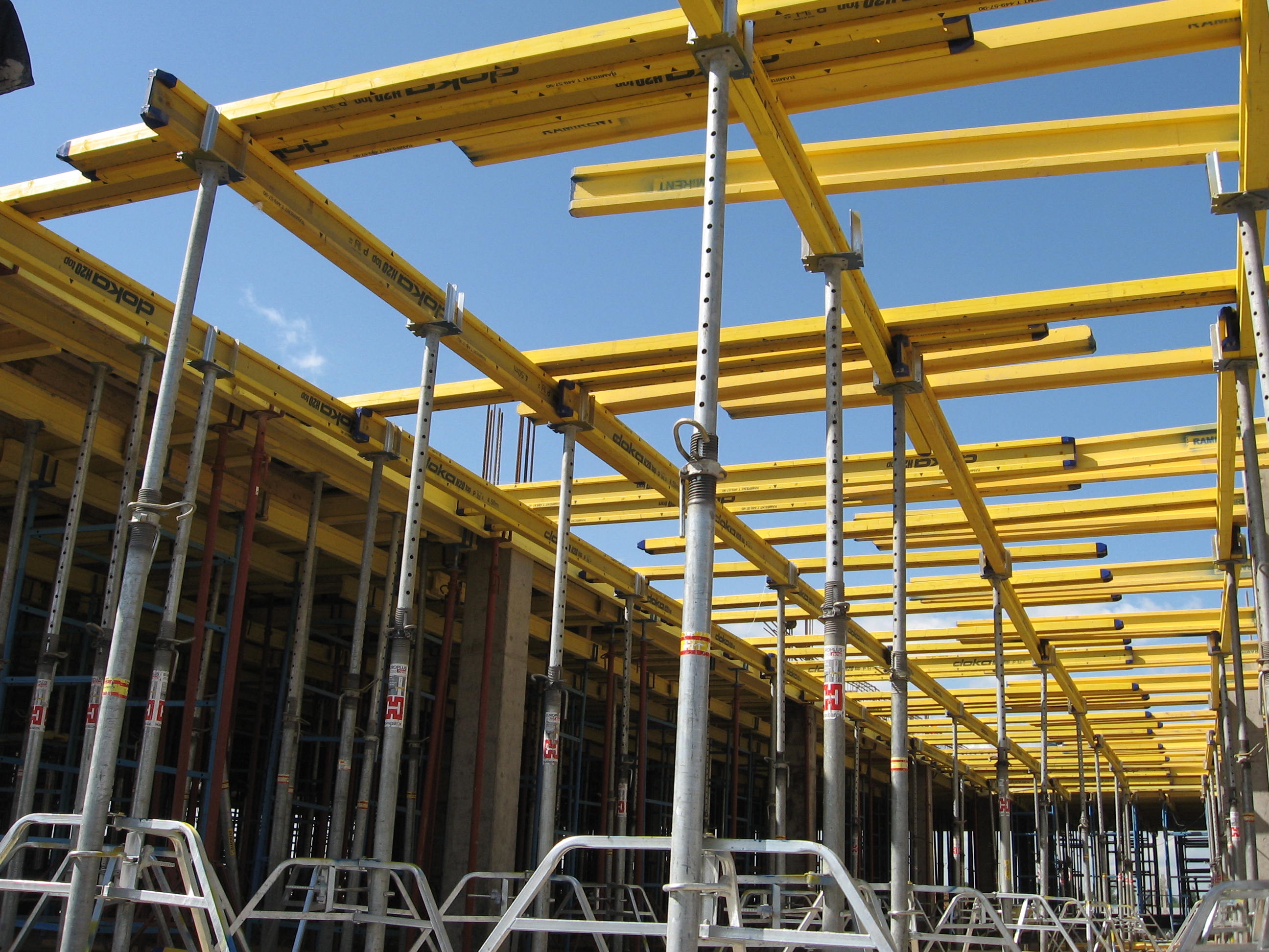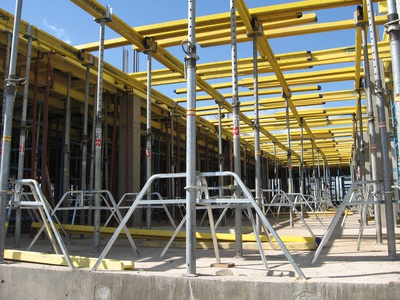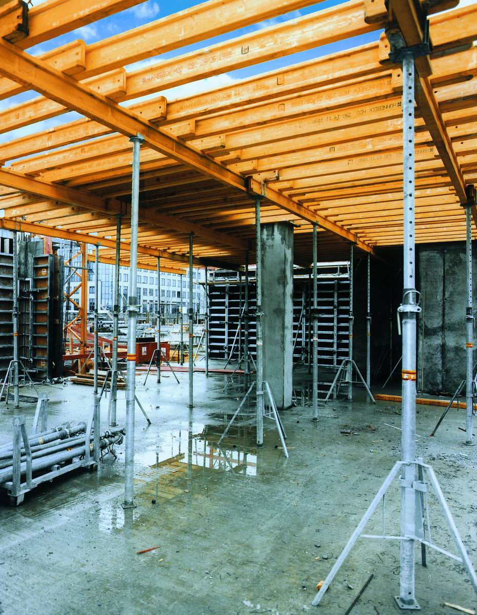 Телескопические стойки применяют на объектах самого разного рода. С опалубкой на стойках заливают перекрытия высотой от 1,9 до 5,9 м в зданиях любой конфигурации. При этом допустимые размер и толщина перекрытий заметно варьируются.