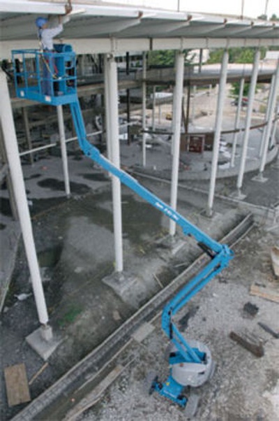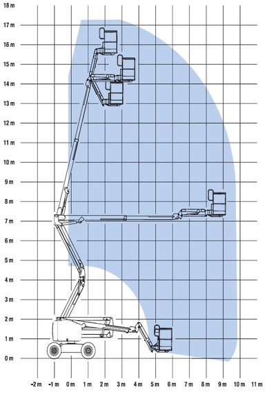 Позволяет проводить работы в труднодоступных местах. Относительно невысокая грузоподъемность и компактная рабочая площадка компенсируется коленчатой «изгибающейся» стрелой с большой длиной вылета. Благодаря этому можно проводить работы в местах, совершенно недоступных для других типов техники.