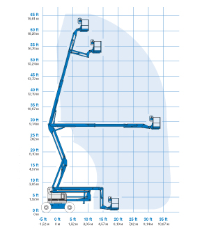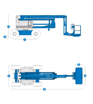 Стандартные характеристики самоходного подъемника. Размеры: