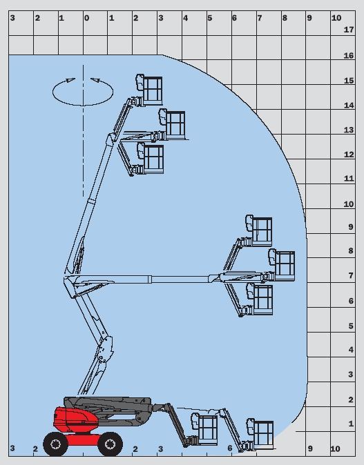 Оснащен дизельным двигателем. Обычно применяется при строительстве каркасных сооружений, когда сборка металлических конструкций ведется на различных высотах. Благодаря изогнутой стреле могут добраться до самых труднодоступных мест. А за счет большого противовеса коленчатые подъемники очень устойчивы и не требуют аутригеров.