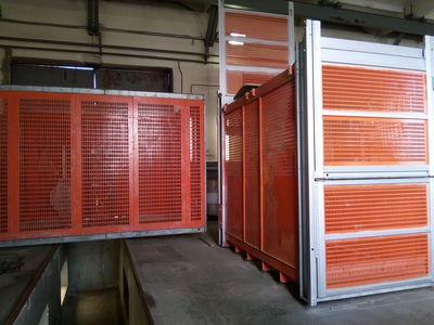 Аренда мачтовых грузопассажирских подъемников ALIMAK Scando 450 14/300 подходит для перевозки персонала и строительных материалов. Грузоподъемность техники составляет 1400 килограммов.