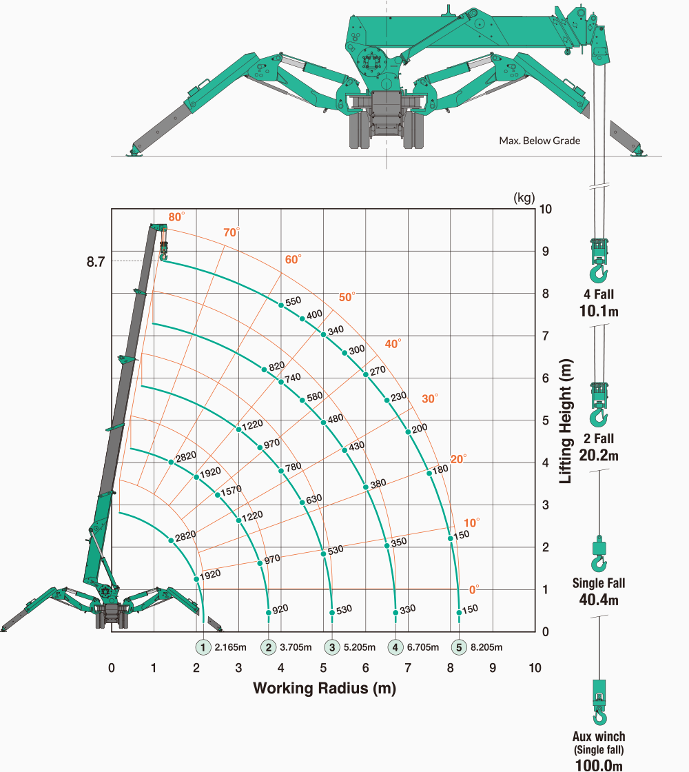 | Максимальный радиус действия | 8,205 м. х 150 кг |