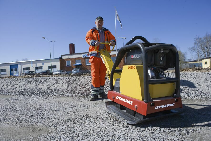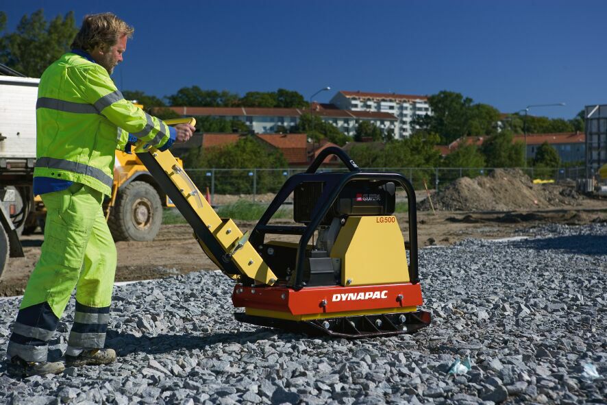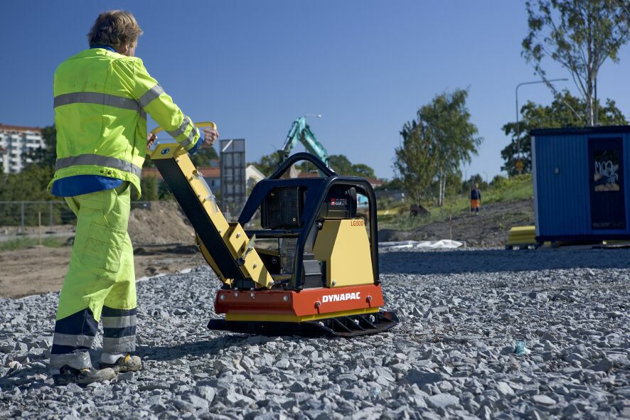 Виброплита напрокат Dynapac LG 500 может быть использована в тяжелых условиях работы, обеспечивая высокую степень уплотнения. Благодаря мощному дизельному двигателю является экономичной альтернативой тяжелым вибрационным дорожным каткам. Широкое основание предназначено для быстрого прессования грунта и камней на больших площадях, а также для строительства фундаментов и засыпания основания у стен.